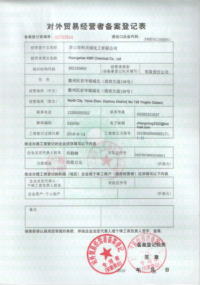 黃山市科貝瑞新材料科技有限公司產(chǎn)品開發(fā)和應用涉及化工、建筑、油漆涂料、電子、鑄造、紡織、塑料、橡膠、印刷油墨、密封膠、電線絕緣漆、油田等各種領域,產(chǎn)品廣泛應用于油漆涂料、印刷油墨、膠黏劑、橡膠制品及輪胎、改性塑料、紡織印染、油田工業(yè)、鑄造、以及其他工業(yè)制品制造等近50個行業(yè)。公司致力提高產(chǎn)品功能性和改善產(chǎn)品環(huán)保性能的研究、開發(fā)和應用,為客戶提供產(chǎn)品應用咨詢和產(chǎn)品銷售服務,同時為客戶有效提高產(chǎn)品質(zhì)量、降低產(chǎn)品成本和提高產(chǎn)品環(huán)保性能提供解決方案。